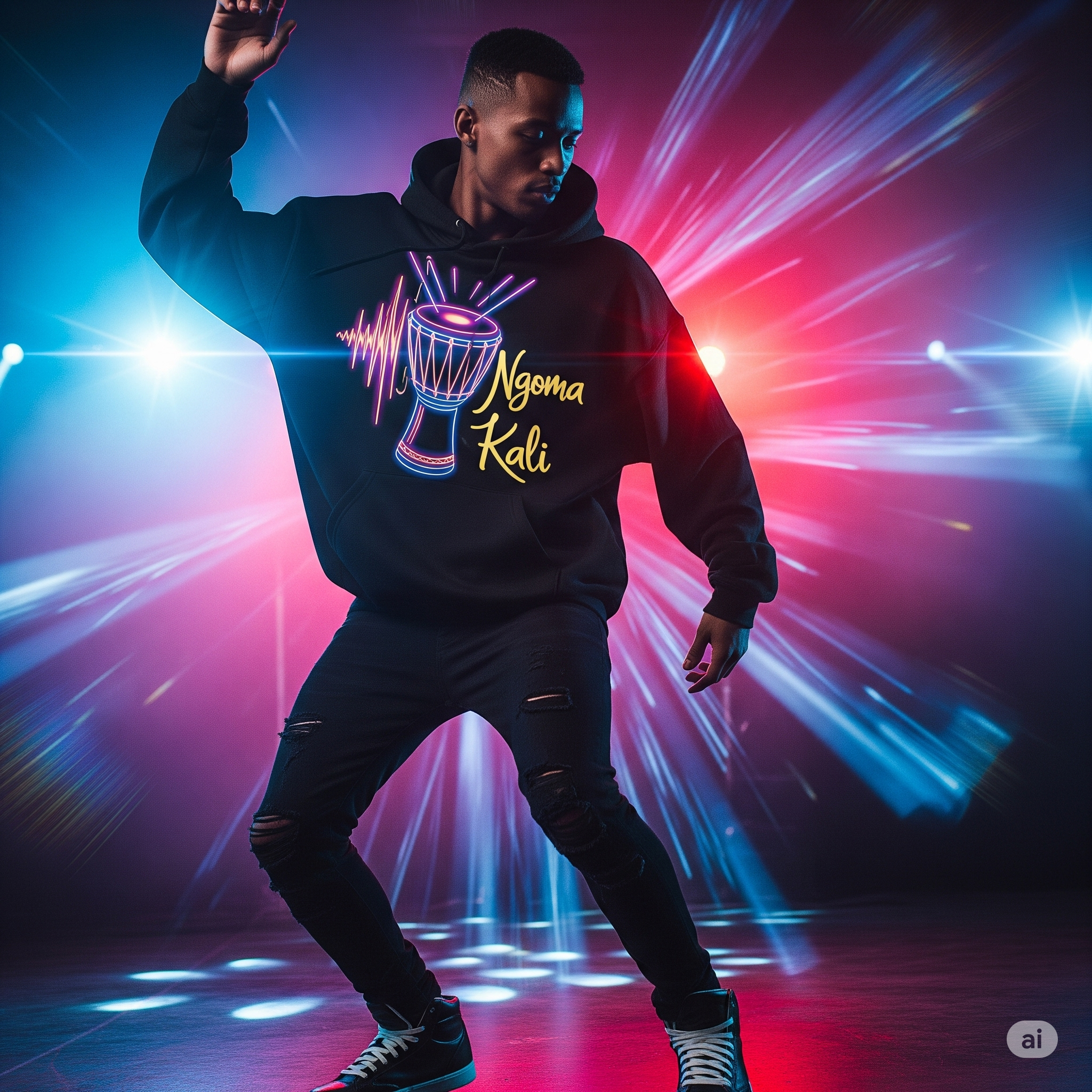 Each piece blends bold colors, glowing accents, and rhythmic patterns to channel the unstoppable energy of movement and music.